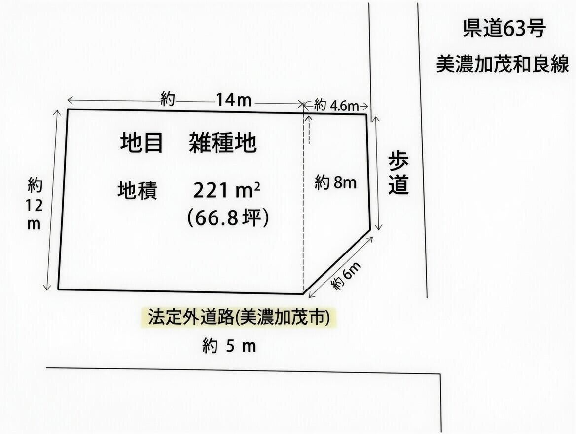 | 交通 | 県道63号(美濃加茂和良線)沿いで国道248号線へのアクセスも良好。 関方面・美濃加茂方面・美濃市方面への移動がスムーズな立地です。 また、長良川鉄道「前平公園」駅まで徒歩19分と、交通利便性も良好です。 |