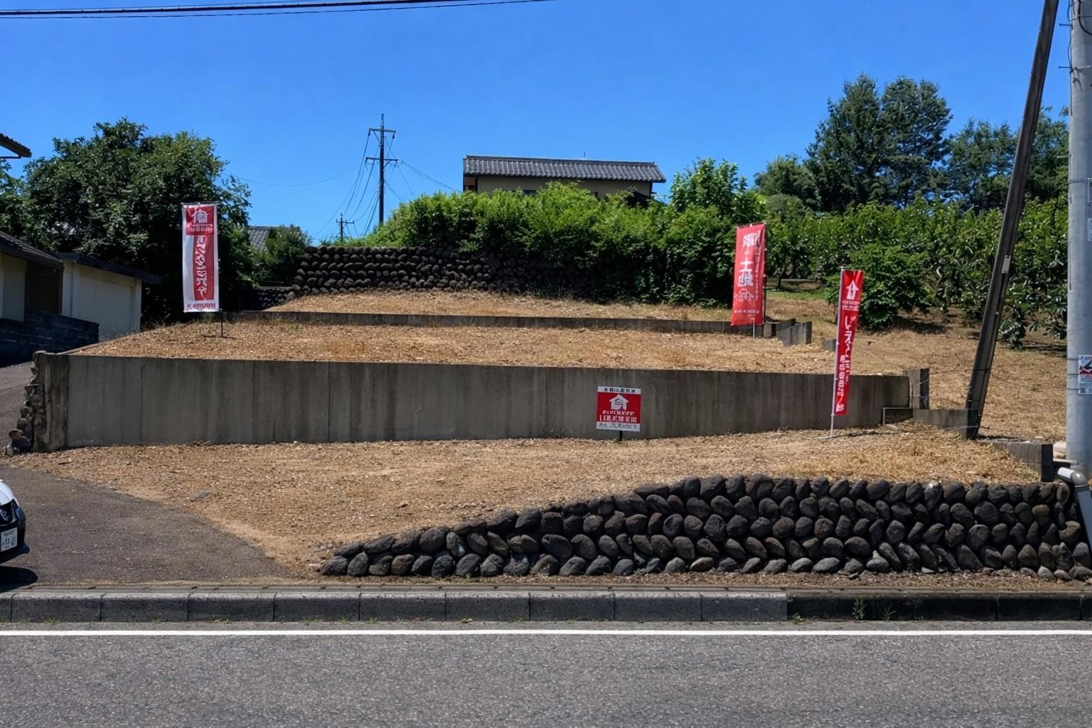 | 現況 | 現況は更地です。 敷地の段差を活かした建築が可能で、立体的な外観や眺望を取り入れた住まいづくりができる魅力的な土地です。 |
